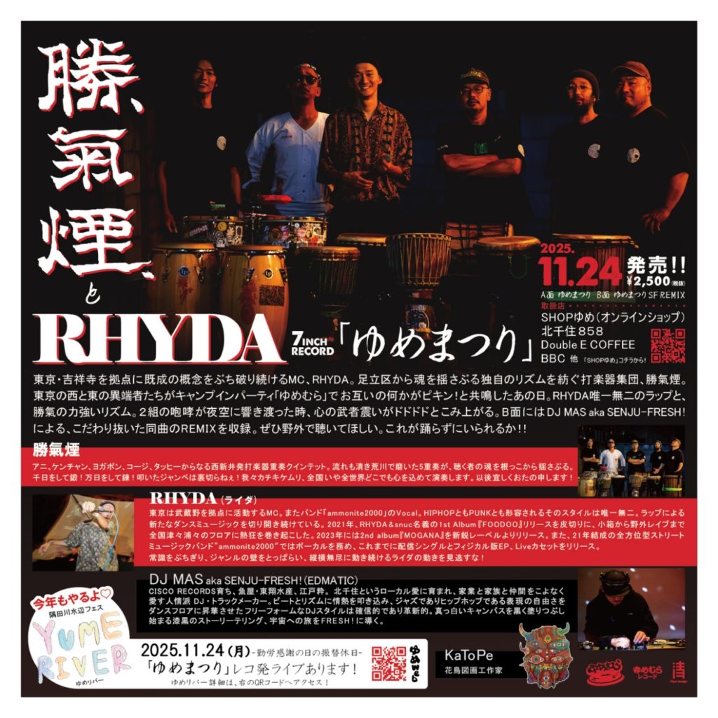 「ゆめむら2025」で村民を熱狂させた勝氣煙とRHYDAによるコラボ曲「ゆめまつり」を7インチレコードとして2025年11月24日に発売することをここに発表いたします!!